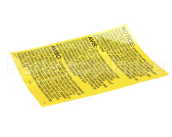 23317 Ultrafryer Decal, Instruction Gas Fryr Se